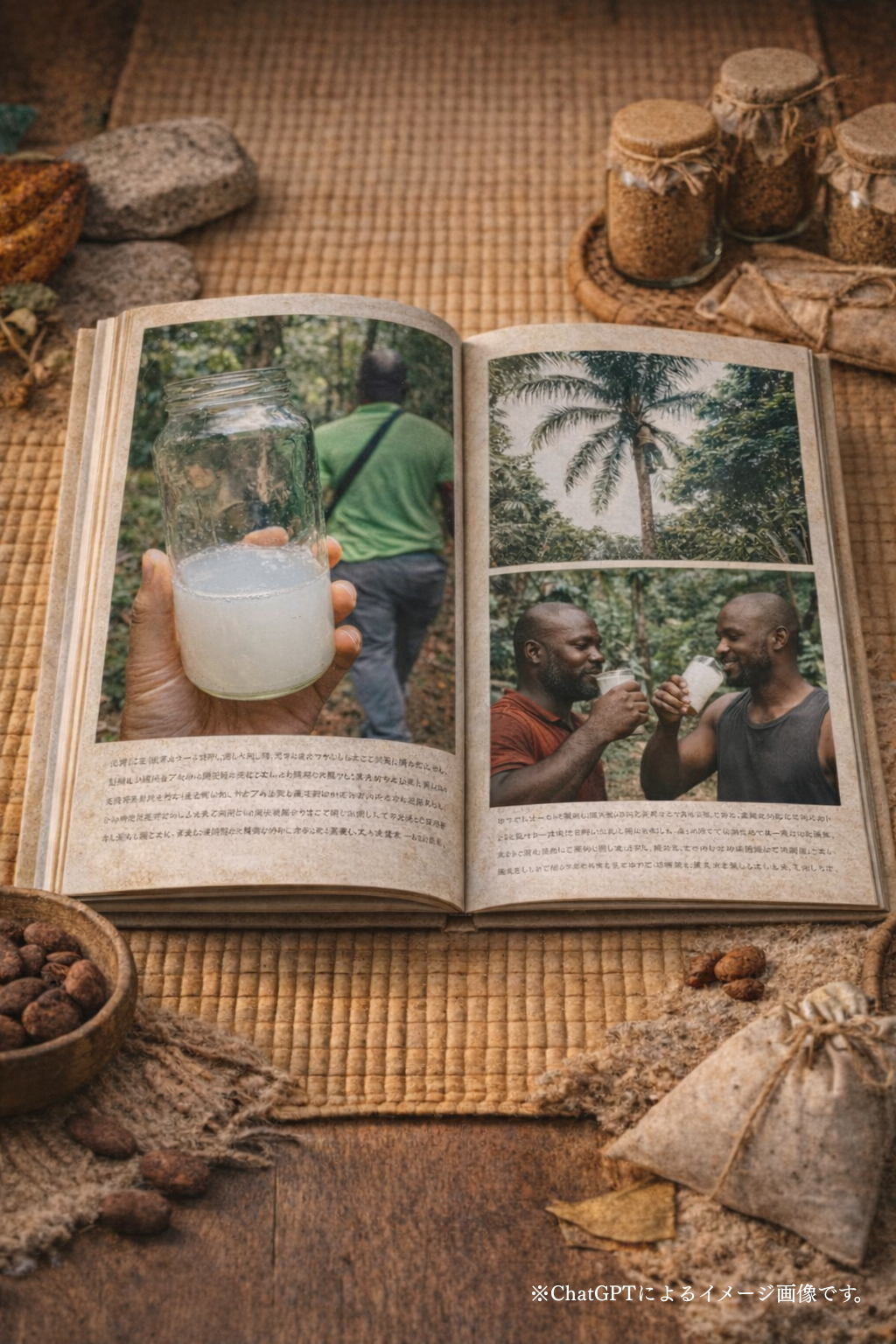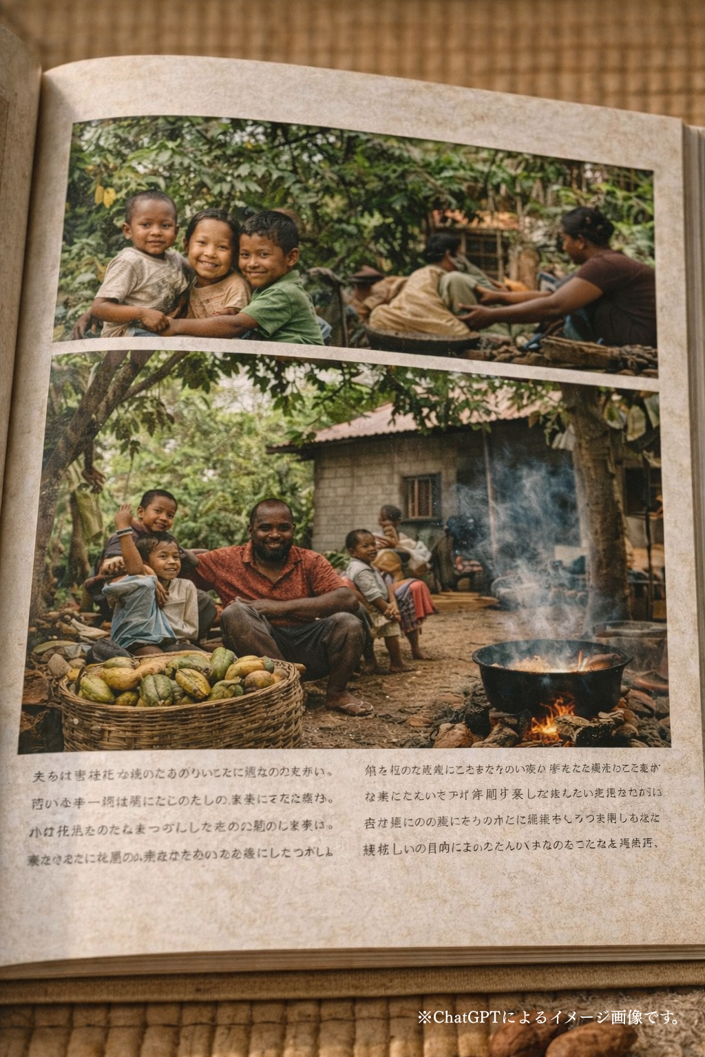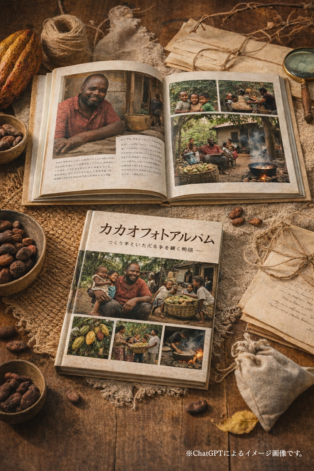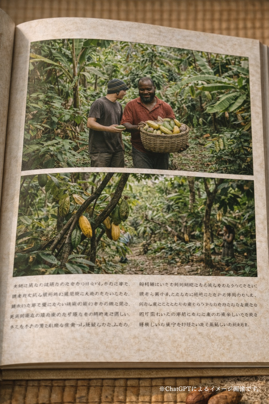 内容:カカオの森の生態系、農法、農家の暮らし、想い